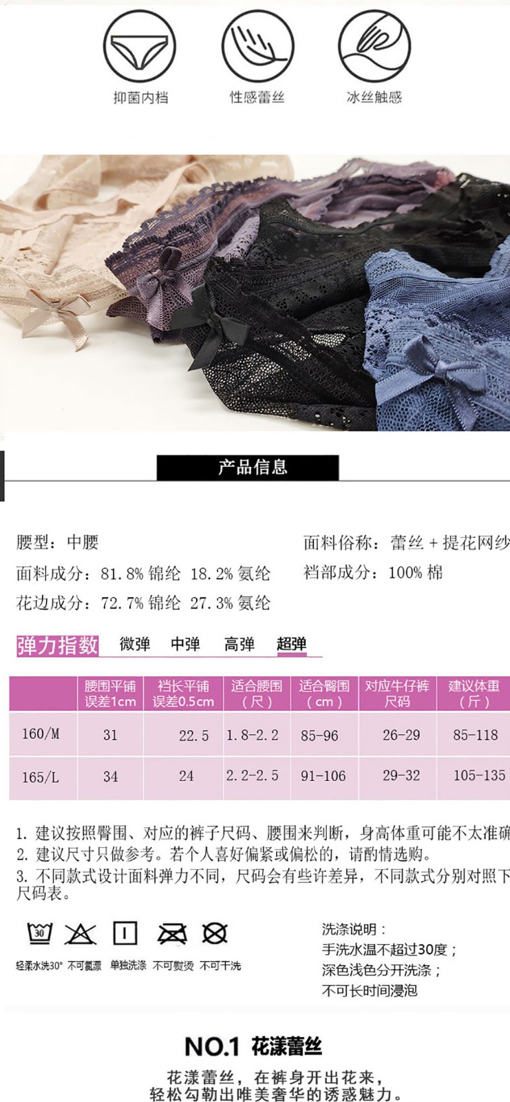 中高腰露腰带蕾丝女士内裤